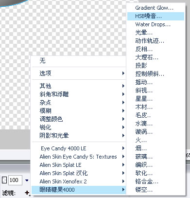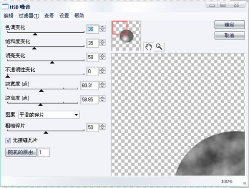 點選畫好的圓形,在屬性面板濾鏡選項裡選擇[眼睛糖果4000(eye canday 4000)]--->HSB噪音屬性如下圖: