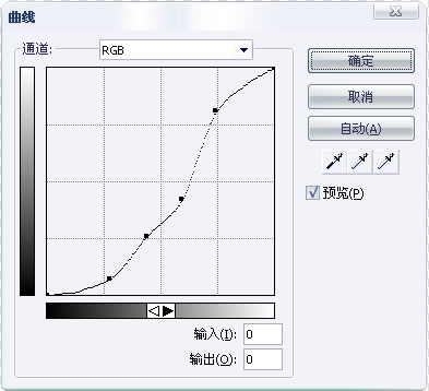 得到的效果只是顏色的效果,在這裡我們為了增加質感在繼續點選濾鏡-->調整顏色-->曲線,屬性如圖: