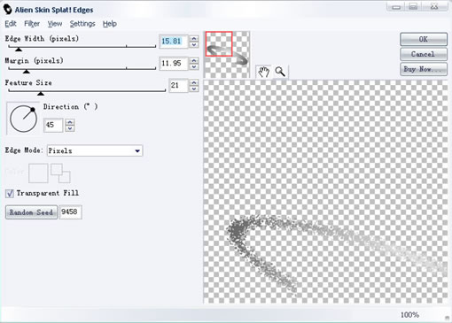第七步: 選取剛做好的扁形位圖,選擇濾鏡-->Aline skin splat le-->Edges.屬性如圖: