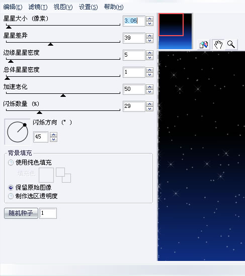 設置完後最後在給背景加上Aline skin xenofex2(漢化版)濾鏡裡的星座濾鏡,屬性如下: