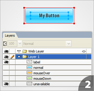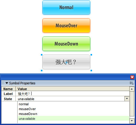 - 按鈕背景圖最好平面化為位圖,避免在縮放時出現路徑開拆(但不平面化也可以保持圖形縮放時的質量不會損失);