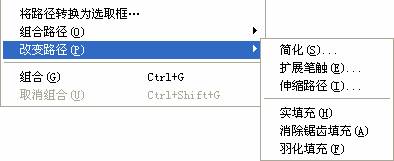 圖1.1 Fireworks9的【組合路徑】和【改變路徑】兩個子菜單