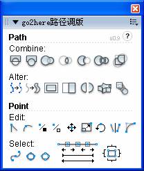 在Fireworks 9中,新增了一個路徑調版,它把【組合路徑】和【改變路徑】兩個子菜單中所有的功能都集中在一個面板上,便於使用者進行編輯,同時,在這個面板中,還提供了一些新的路徑編輯功能。如圖1.2所示。