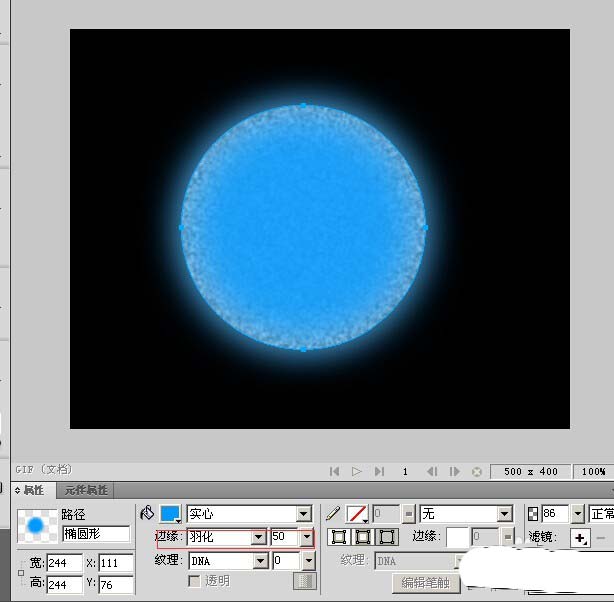 7、再用橢圓工具畫一個和之前一樣大的圓,填充色為#0099FF,並將羽化設置為50;