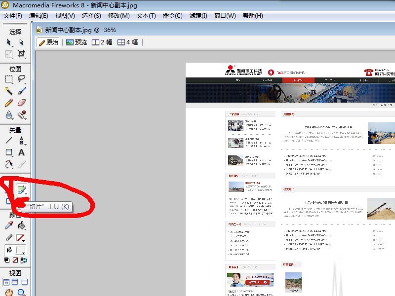 3、進行切圖的時候,我們主要用的是web工具裡切片工具,如下圖的標識出來的工具。