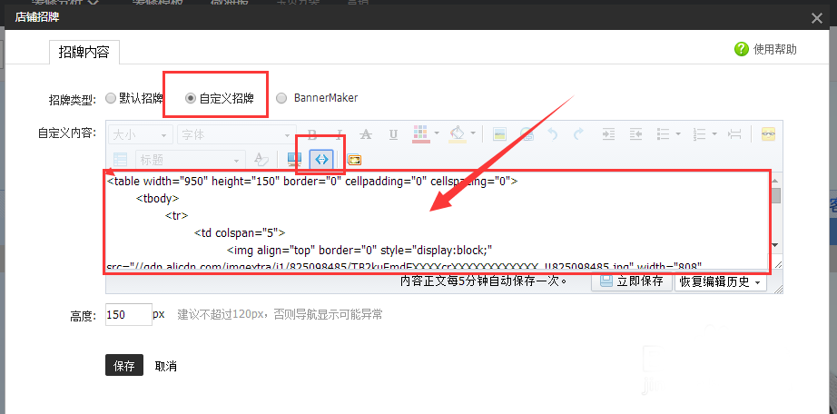 7、將代碼中src="未標題-1.jpg"中“”裡面的換成淘寶圖片空間該圖片的鏈接。把所有的代碼復制粘貼在自定義店招裡,店招熱點加鏈接就完成了。注意要選擇自定義店招。