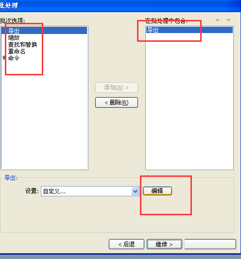 5、我們把導出的命令,從左邊添加到右邊