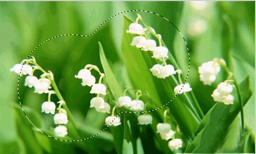 3、使用【橢圓選取框】工具在素材“花草”上面中繪制一個正圓的選區,使用技巧是按住【Shift】鍵,使橢圓變成正圓。按住【Shift】鍵,再畫一個正圓與原先的正圓疊加,如圖;