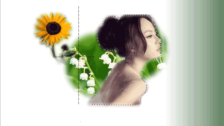 6、使用【多邊形套索】工具,把圖像素材“向日葵”中的向日葵區域摳出來,同樣復制到前面新建立的畫布中來;
