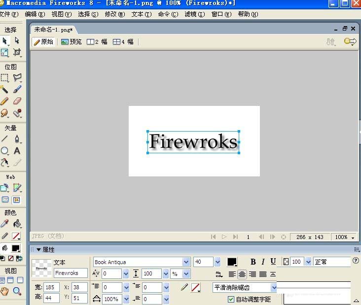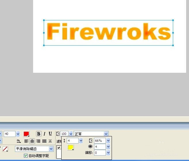 1、用“文本工具”寫一個基本素材“Fireworks”