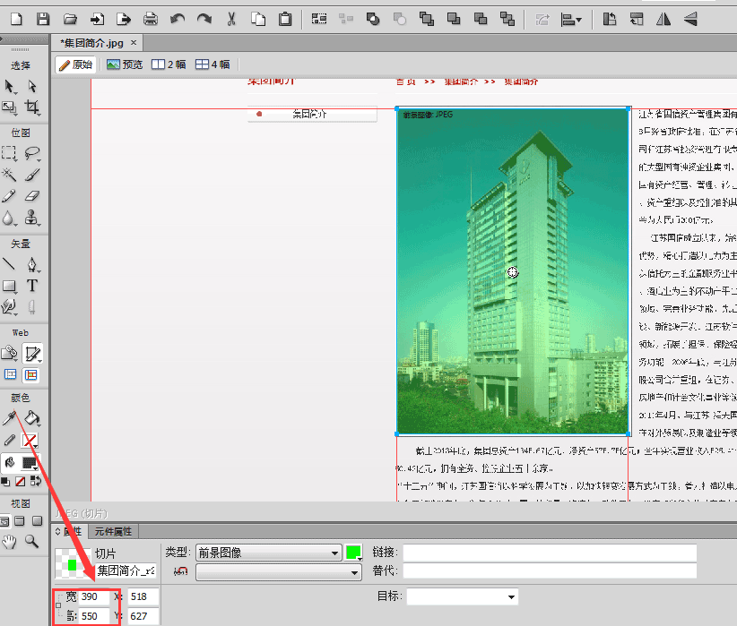 然後選擇要切的圖片,紅色框中是圖片的高和寬,裡面的值是可以進行修改的,一般用來進行微調。