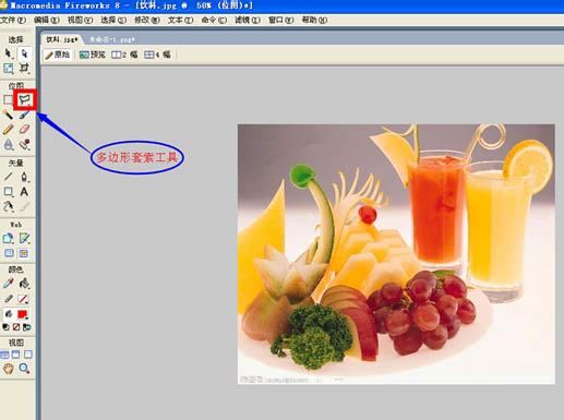 事實上用FW摳圖有兩種實現方法,一種是使用“魔棒工具”、還一種是使用“多邊形套索工具”,魔棒工具快速,但不夠細致,套索工具細致但不夠快速,下面為您展示這一操作過程。
