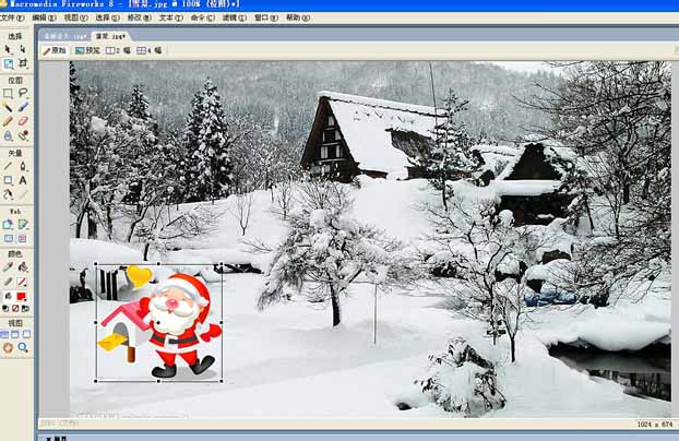 2、選中智能摳成的聖誕老人,復制到新的雪景圖片中,則可以看見自己的勞動成果,如圖所示: