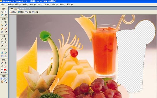 3、遇上復雜的圖片,不能使用魔棒工具的時候,我們就選擇套索工具,比如下方圖片中,我想要把果汁給摳下來,該怎麼做呢?