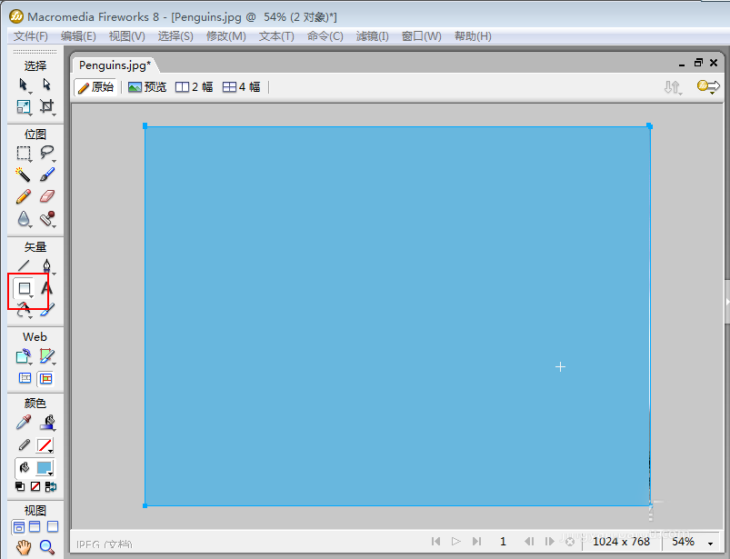 2、在左側選擇矩形工具,在圖片上畫一個矩形,大小和圖片相同;