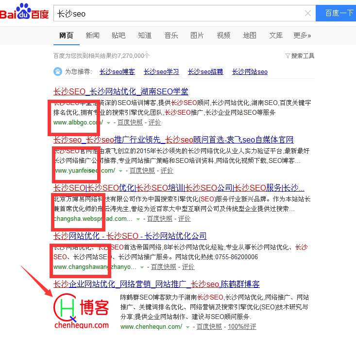 什麼叫沒有了網站logo?准確來說應該是網站索引logo,這個logo確實網站很好的一個展示窗口,我以長沙seo關鍵詞為例,我給大家舉例! 我輸入長沙SEO,出來的百度