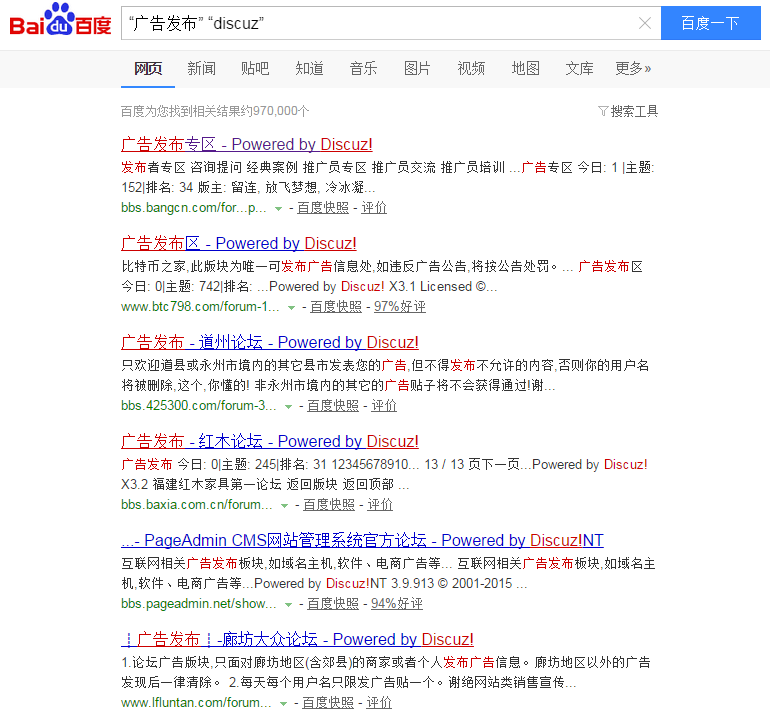 基礎命令一:例如尋找論壇可以發布廣告的外鏈平台就可以在百度搜索框中輸入這個命令:“廣告發布” “discuz”這裡需要注明的是引號內部的文字僅僅是舉例,可以根據