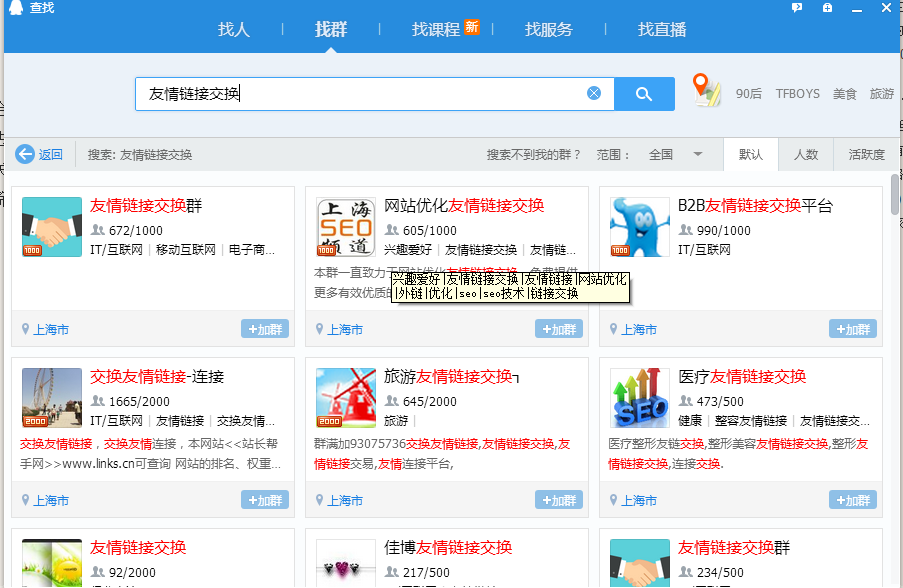 對於友情鏈接作用相比各位站長都是比較認同的了,這裡不再贅述,但是對於交換友情鏈接的方式方法等這個就需要因人而異了,所以SEO知否今天就和大家簡單分享下如何利用QQ群來交換