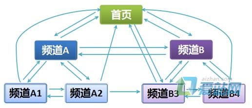 根目錄下分多個頻道或欄目,網頁分部在各頻道或欄目下。 示例: