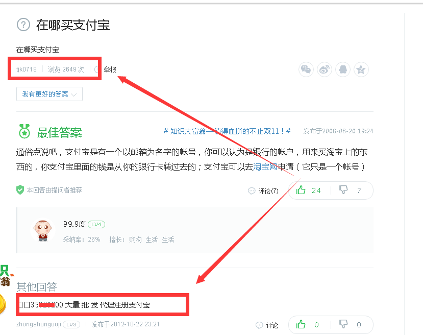在百度知道上面,利用百度知道留圖片、留聯系方式的技術,將自己的聯系方式留上去,然後坐等魚兒上鉤。(注:上圖僅僅是參照,本人不操作)筆者添加了部分QQ,發現支付寶價格大多在198-398價格不等。QQ空間,也曬有各種交易圖片。結合百度知道的浏覽量看,每月購買支付寶的人數有數千人,每個收200。一個月賣150個,輕松月入30000+。
