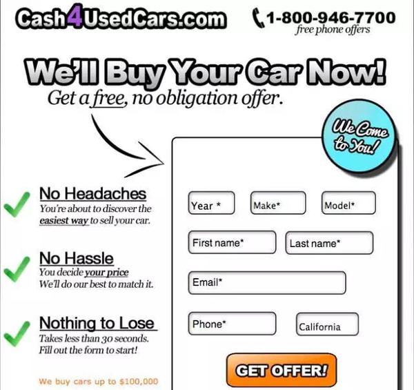 我之前向你們展示過的Cash4UsedCars的著陸頁面就是隔離式著陸頁面的一個極好的案例。它只有一個目的且沒有其他鏈接,除了頁腳隱藏起來的那些。