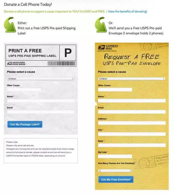 結果如何?轉化率提升了77%而每一銷售線索成本下降了42%!然而這只是一種比較基本的重新設計方式,我們仍然在測試這一頁面的所有元素來持續提升轉化率。這還有另一個客戶案例,Second Wave Recycling——某一線上手機捐贈慈善組織。這個會更加具有創新性一些,他們的舊表單如下所示: