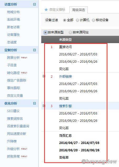 登錄百度統計後台-->找到流量來源報告-->進行同比分析;