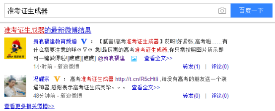 通過高考准考證吸粉的最主要的方法,是通過網站發布分享在線制作准考證的信息,其中網站並沒有直接分享真實的地址,而是關注我的微信,回復“准考證”才可以看到關於准考證的地址。