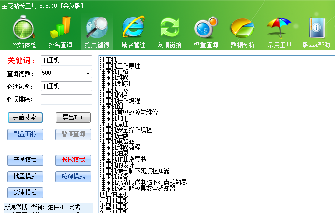 如下圖,通過金花站長工具挖掘關鍵詞。
