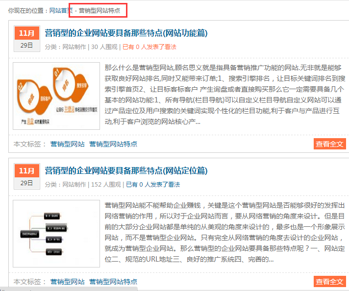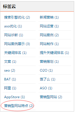 例: 可以設置"營銷型網站特點"TAG標簽組合搜索頁面來實現。