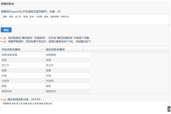 組語的好處:關鍵詞100字符的充分利用化,並盡可能覆蓋多關鍵詞