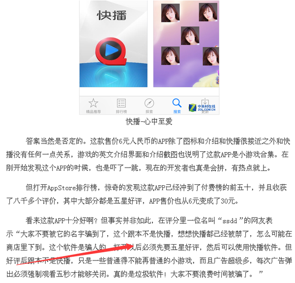 這條新聞於1月15日爆出,上圖就是新聞相關截圖。新聞標題是:“快播”重返蘋果App Store這是什麼鬼?,大家如有興趣可以在網上自行搜索便是。