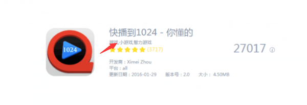 但這款APP真的是快播嗎?它跟快播其實半毛錢的關系都沒有,看下面紅色箭頭指向的部分,這明明就是一款游戲類APP嘛。這類的手法,只能說有點厚黑,但在商言商,並無不妥。