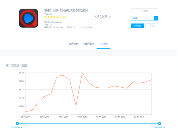 下面我們來看看這款名為‘快播-最新增強版視頻播放器’的相關數據。(此款已被下架)