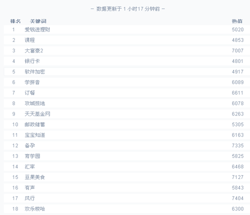 在選擇關鍵詞時,關聯性這個問題這裡就不多做解釋了,關聯度越高的關鍵詞帶來的用戶精准度就越高,反之亦然,在我們進行選詞時,會參考一些詞的熱度,或利用百度指數或利用ASO工具,但要注意有些熱詞是人為刷上去的。如圖: