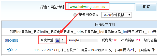 這家公司負責人是通過我的小明SEO博客找到我的。因為他本人也懂一點點SEO方面的知識,所以就詢問了我一些問題,我都一一很細心的給他解答了。之後,他說讓我幫他看一下網站,通過初步的了解我發現他的網站存在很多非常嚴重的問題,其中一點就是網站當時已經是完全降權的狀態,網站的內部也是亂七八糟,就連最基本的URL的規范性都沒有做好。然後我把情況告知了他,他讓我幫他優化網站並指定了將“武漢led顯示屏”給他優化到首頁,接下來我們就詳談了一下合作的事宜,我跟他其實都是比較爽快的人,沒過一會兒就談妥了,這樣我就正式接手了這個網站。
