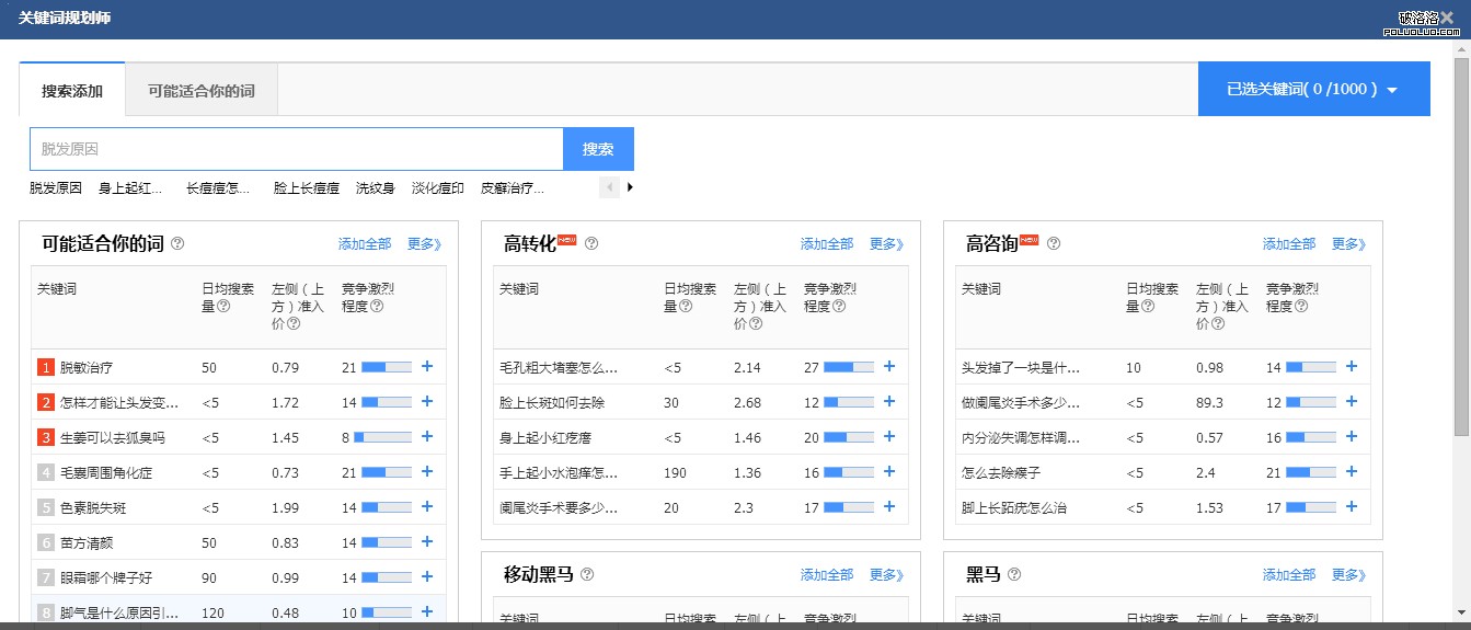 競價的百度推廣客戶端可以精准挖掘到所有用戶在百度搜索過的相關關鍵詞,因此,原則上來講百度推廣客戶端挖掘到的關詞是最精准最全面的。這對於開了競價賬戶或者有競價資源的站長來說,挖掘關鍵詞省力不少,快去下載下來吧。