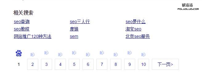 第二個是搜索關鍵詞之後,頁碼上方的相關詞: