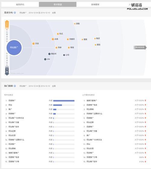 那麼今天的重點知識來了。如何能夠找到用戶主需求,並且做好網站前期定位?其實只需要一個簡單百度工具即可—百度指數需求圖譜。我們以關鍵詞“網站推廣”為例來說明。