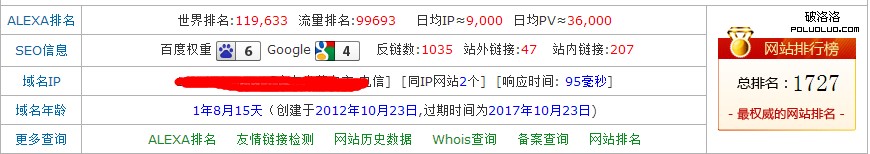 通常情況下站長朋友都是認為一個好的網站才會出現一堆排名好的長尾關鍵詞,所以都是在首頁以及目標關鍵詞裡面大下功夫。然而,今天筆者來分享一個自己做站的經驗,是主要做長尾關鍵詞和內頁的排名,從而來提升全站的權重以及目標關鍵詞的排名。而不是去主要做主頁權重,從而從中分權出來的內頁權重值。先附上筆者做的網站站長工具截圖: