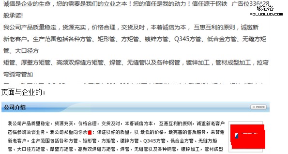 其次,是用戶在產品頁面亂發公司介紹信息,與頁面的公司簡介重復度較高。不得不說,現在的用戶在發布產品信息時,不論是產品供應還是產品供求信息,內容裡都會胡亂發布關於公司的信息,就好像用戶必須讓其他用戶訪問這個頁面時發現自己的公司信息,之前筆者診斷了一些B2B站點,發現有不少B2B都出現這個問題。