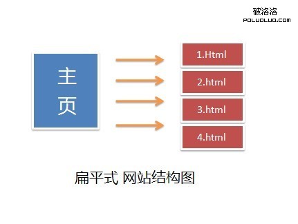 扁平式的網站結構,主頁下面直接是相關的內頁,這樣的結構設計主要是縮短了蜘蛛訪問內頁的路徑,所有的內頁都被放置在根目錄,這樣的好處是蜘蛛抓取效率得到提升,所有內頁權重平等,一般企業站新聞信息比較少的情況下,可以采用這樣的結構,當然這樣的結構缺點就是內頁都布置在根目錄,隨著內頁文章的增加,非常不利於後期管理和維護。采用什麼樣的結構具體要依據自身站點的信息量進行確定,總之一點要方便用戶訪問,方便蜘蛛爬行。