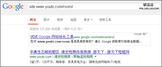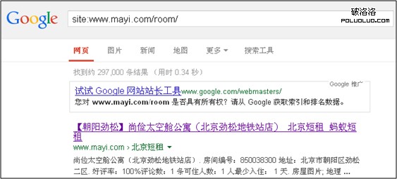 螞蟻短租僅北京頻道頁面的篩選條件組合後將會生成690000多個頁面,但被收錄的卻僅有55200個頁面,收錄率約為8%,全國加在一起將會是什麼樣的比例呢?