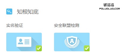 知根知底上顯示實名驗證、安全聯盟檢測,百度江實名驗證和安全聯盟檢測放在上面,讓用戶對網站做到知根知底,可能知根知底這塊沒有被完善,因為點擊實名驗證和安全聯盟檢測的時候都沒有顯示其他內容或者跳轉其他的頁面,所以有待觀察中。但知根知底讓用戶知道了這家網站的實名信息。