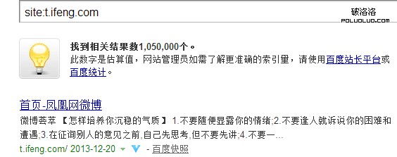 我們知道,只要被收錄的網頁,其鏈接都是可以被計算的。比如鳳凰微博,我們site之後發現收錄量過百萬,而且在微博發布頁面含有發布鏈接,因此這個鏈接肯定是有效的。