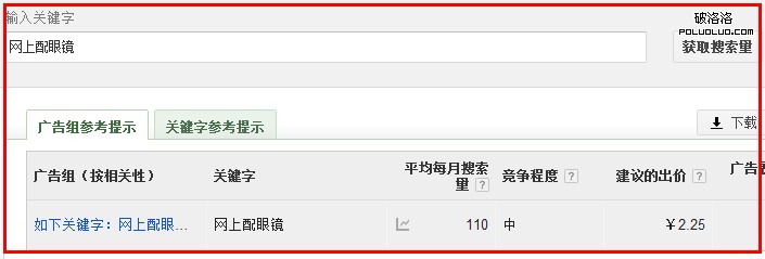 第二,判斷關鍵詞競爭程度還可以在競價排名廣告中需要付費的價錢,我有自己的百度競價帳號,所以我可以看到詳細的價錢,建議站長可選可不選,如果本身就已經開戶了,建議還是選擇這個。接著是我選擇某個關鍵詞,比如我選擇了眼鏡網時,後台會提示我所要付的價格,這個方法非常不錯的。