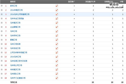 編號3230的頁面是因為最近還有十多天就到馬年春節了,因此不少公司在年底聚餐時總想喊口號討吉利,於是引爆了這些關於“馬年標語、口號”的長尾關鍵字的搜索熱潮。但這個編號3230的頁面流量是很難持續下去的,估計高潮在春節期間甚至開年飯前,但過了那段時間搜索流量將逐漸下降,最後這個頁面將歸於平淡。但不管如何,至少在這段時間,這張頁面是符合搜索需求的。