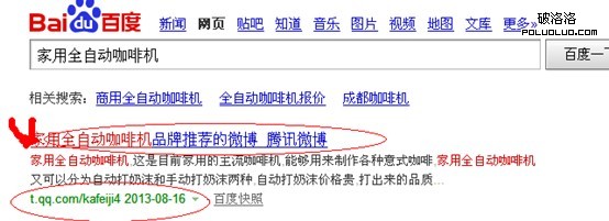 在利用這一平台推廣首先得撰寫好一個符合產品內容的標題:筆者銷售的是“咖啡機”因此筆者就將騰訊微博的標題撰寫為“家用全自動咖啡機”當用戶通過搜索引擎檢索家用全自動咖啡機之時就可以找到筆者所利用騰訊微博所推廣的產品信息。