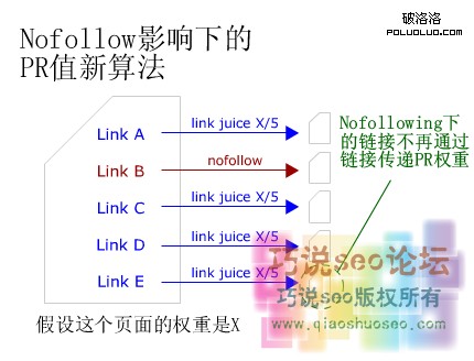 搜索引擎對nofollow的響應是不跟蹤該鏈接,也就是說不會順著此鏈接爬行,當然也不會向該鏈接傳遞權重。我們在接觸PR的時候學過,導入鏈接越多,PR就會相應升高,導出鏈接越多,PR就會相應降低。但是權重遠沒有PR那麼簡單。權重考慮的是當前頁面文章質量、網站整體權重、來源頁導入的權重、目標頁導出的權重以及鏈接相關度評分等因素。所以不要覺得有些網站好多導出鏈接仍然排名很高而納悶。那麼我們什麼時候應該使用nofollow呢?