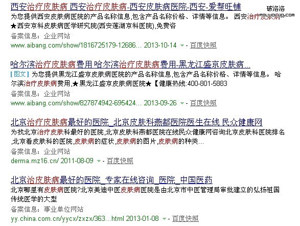 進入比比貼網站,就可以看到首頁下面都是VIP發布的信息,而且這些信息都是醫療廣告。百度對買“賣火車票機票”、“醫療”特別敏感,就比如你在百度搜索“火車票”,顯示的網站明顯有特別之處,就是下面有“網站的備案信息”,告訴用戶哪些是個人備案或者企業備案及最有權威事業單位備案,更好地提醒用戶辨認。而比比貼分類信息全都顯示這